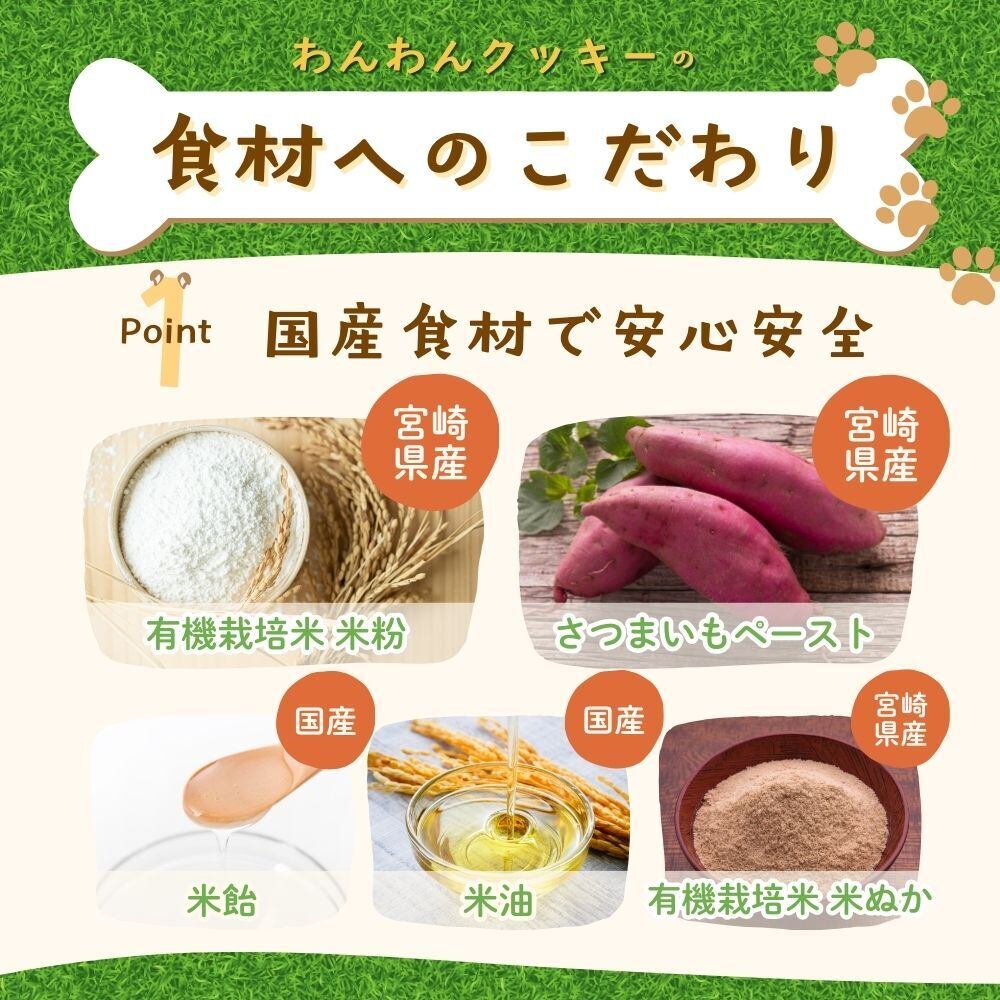 わんわんクッキー お菓子 おやつ 焼き菓子 クッキー 犬 犬用 わんちゃん わんこ ペット ペット用 無添加 オーガニック 国産 グルテンフリー 健康 さつまいも 米 米粉