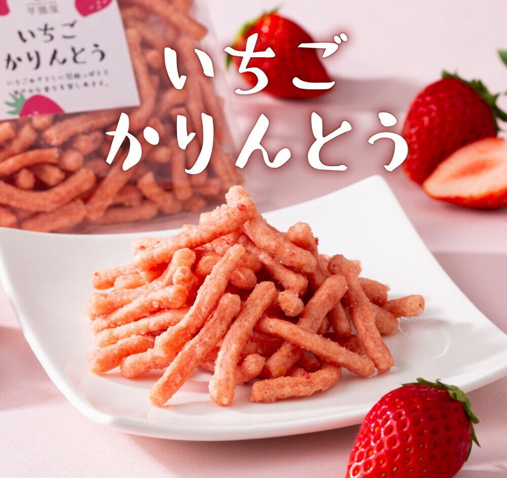 原材料名 小麦粉(国内製造)、砂糖、植物油脂(米油)、水飴、脱脂粉乳、イースト(パン酵母)、いちご風味乾燥品、食塩、いちご果汁加工品/着色料(紅麹、アントシアニン、ラック)、香料、加工デンプン、酸味料、甘味料(ステビア)、酸化防止剤(V.E)