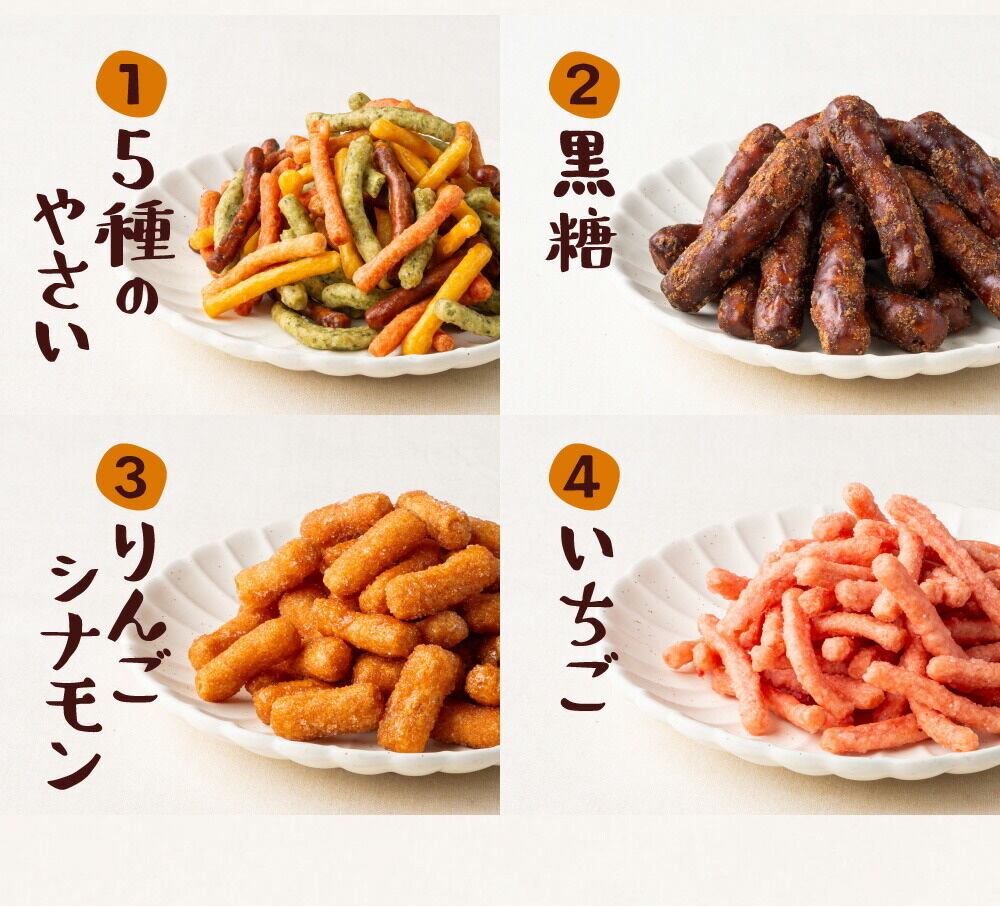 かりんとう4種食べ比べ 野菜 りんご いちご 黒糖 お菓子 スイーツかりんとう 和菓子 個包装 こめ油 karinto-4